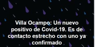 Se confirma 1 caso positivo nuevo en Villa Ocampo