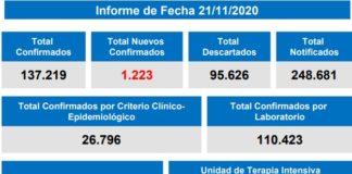 Covid-19: Provincia Santa Fe informó 1.223 nuevos casos y 21 fallecidos