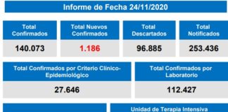 Covid-19: Provincia Santa Fe informó 1.186 nuevos casos y 31 fallecidos
