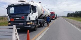 Camioneros reclaman al costado de la Ruta 11, en Reconquista