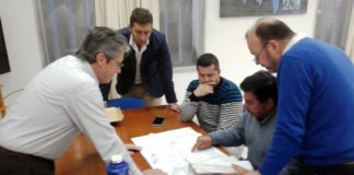Paduán reunido por el terreno del futuro Centro Cultural Educativo (CCE)