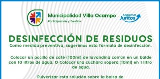 Villa Ocampo: Solicitan desinfección de las bolsas de residuos