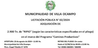Villa Ocampo; Licitarán 3.000 tn. de ripio