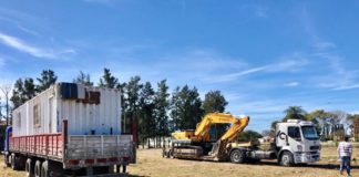 Comenzaron a llegar las máquinas a Romang para pavimentar Ruta 36
